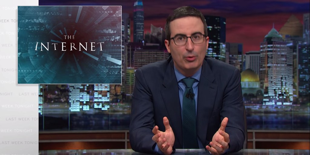 Oliver opened with an amusing AOL ad from 1995 about the wonders of the Internet, an essential of modern life that he says has evolved into a haven of harassment. And if you think that’s an exaggeration, Oliver sends his sincerest “congratulations on your white penis — because if you have one of those, you probably have a very different experience of the internet.”