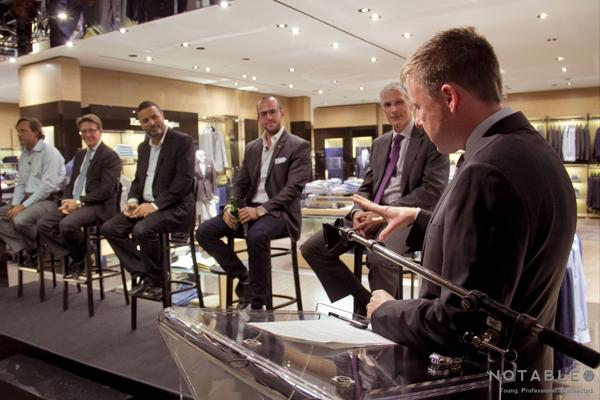 After about 45 minutes of drinks (Steamwhistle beer or wine) on the expansive store’s 4th floor, along with passed hors d’oeuvres (the prosciutto-wrapped shrimp was the winner of the evening), the panelists took the stage for the casual but informative discussion. It was Mr. Rosen himself who introduced the panel and the event, asking the age-old question of whether clothes make the man. The answer is a decided yes. As Mr. Rosen said, “when you are dressed well, people can focus on you and your ideas. His advice to up-and-coming YPs? “Never get too big for your britches.”