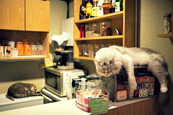 In the simplest terms, here’s how it works: You go to a Cafe that has cats and you hang out with them. Maybe you read a book, have a coffee, surf the web, but all the while there will be cats hanging around. Presumably you won’t go to these places to do ordinary Cafe things, but rather to make some new feline friends. Often there are cat snacks and toys you can purchase to entice these kittens into liking you – ‘cause hey, they don’t know that you already paid an hourly rate just to get in the door. These little balls of fur need to be wooed.