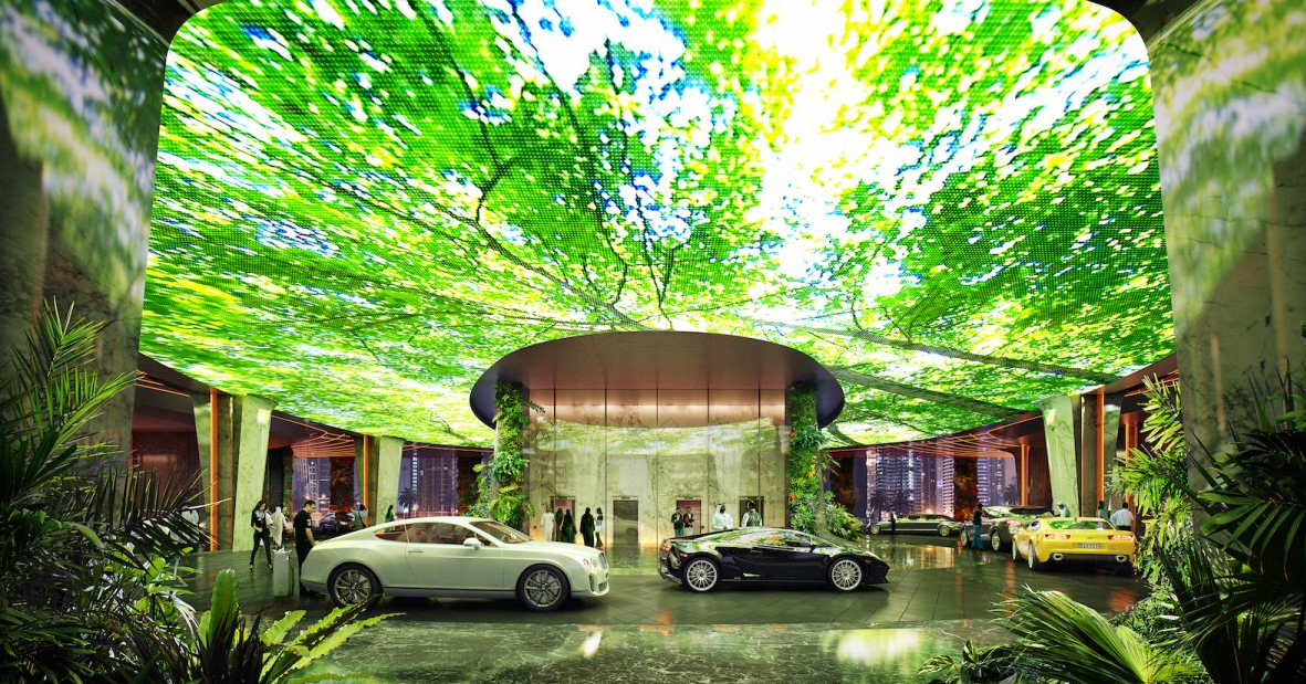 Upon arrival, guests will be greeted by intricate 3D projections of ocean life and rainforest at the hotel’s drop-off point.