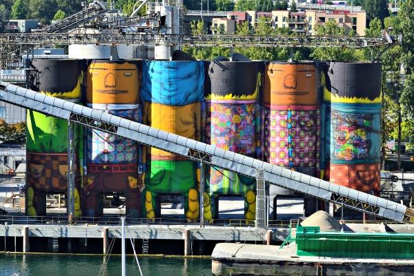 6. OSGEMEOS’s Transformation of the Industrial Silos at the Vancouver Biennale (Vancouver)