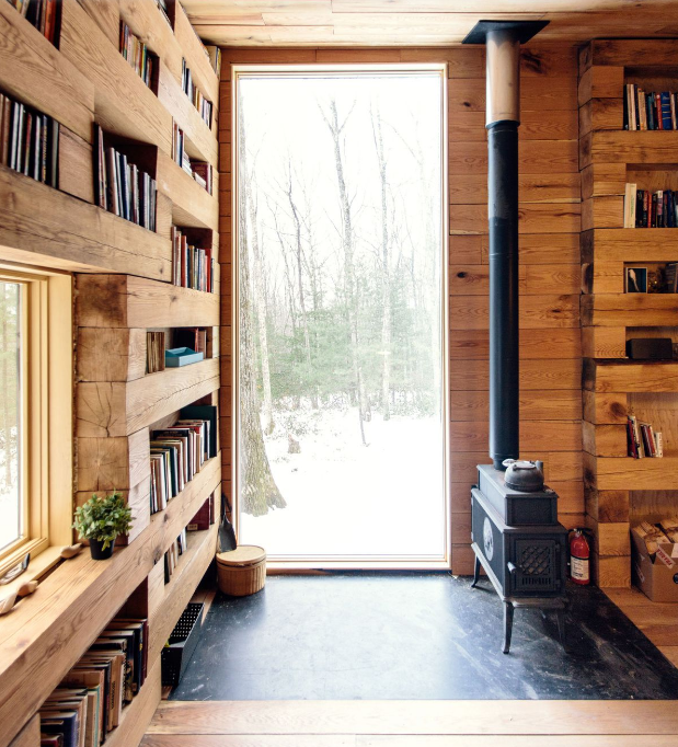 But, as reported by Mashable, one vacation home in upstate New York houses a little black cabin that’s basically a book-lovers’ dream.