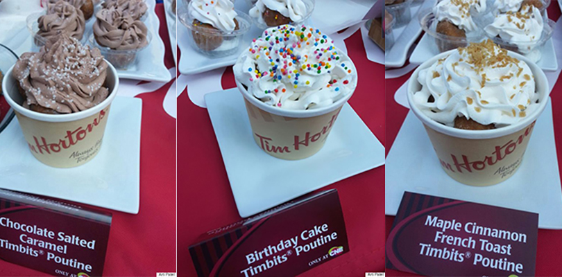 The exclusive poutines ($4) will be available in chocolate, birthday cake, Oreo, cinnamon French toast, and chocolate salted caramel flavours, while unfathomable Timbit varieties like cola and cotton candy will also be on offer.