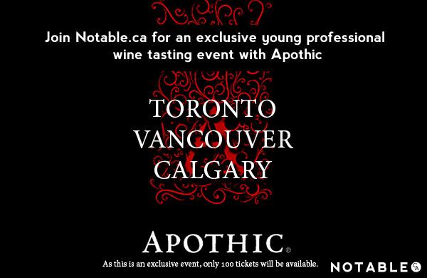 Notable.ca and Apothic Wine are going on tour. Care to join us and some of the most forward-thinking and trendsetting young professionals across Canada over a couple glasses of delicious wine?